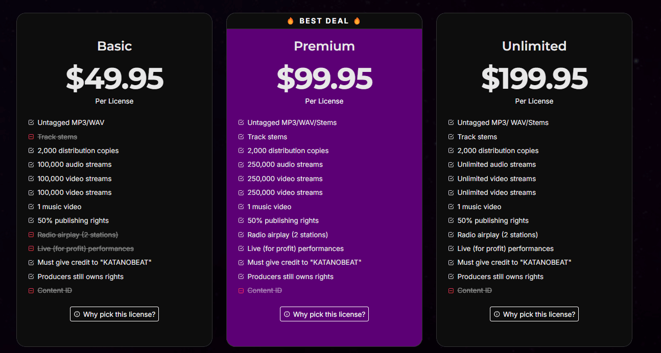 But, besides the stems, you’ll also get better user rights. This allows you to distribute the song across multiple streaming platforms, maximize your exposure, and see a higher return on investment.
